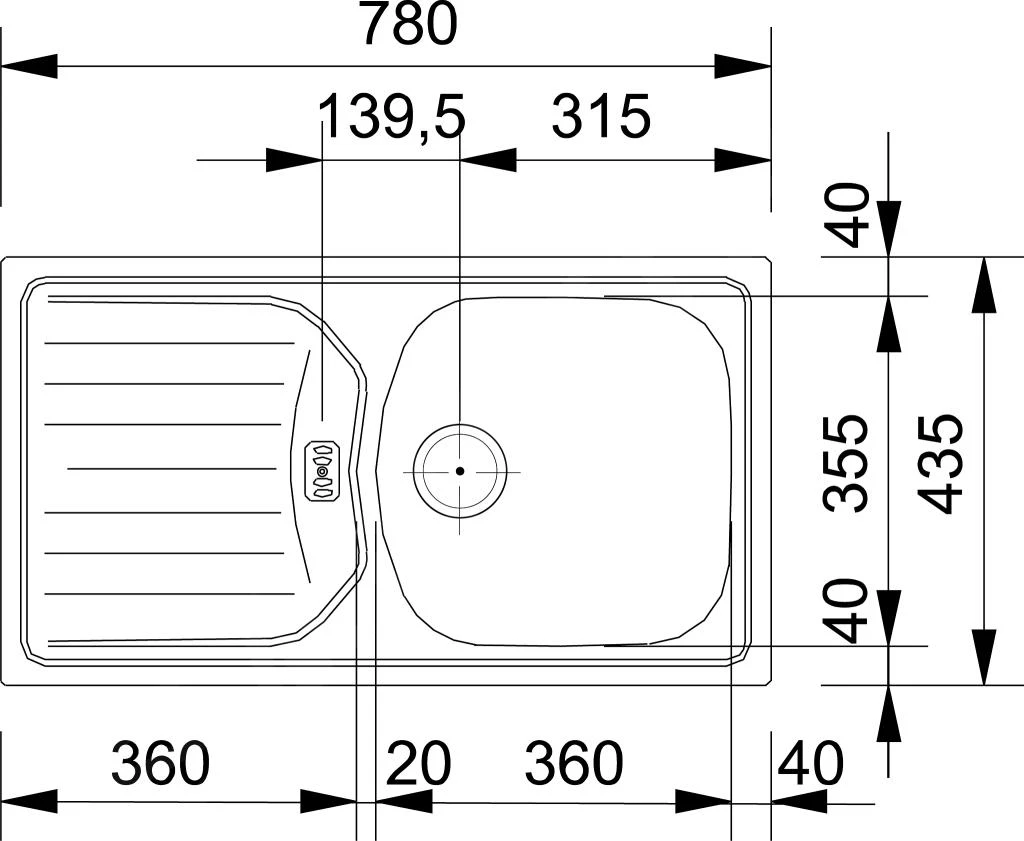 - dimensión del fregadero 360 x 355 x 140 mm