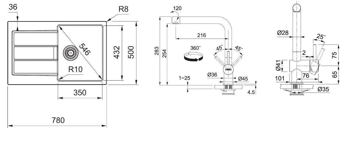 Fregadero de tectonite Sirius 2.0 S2D 611-78, para montaje sobre encimera