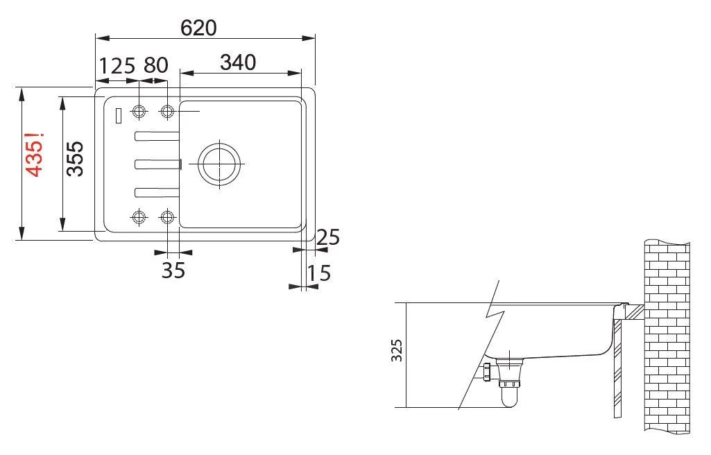 - fregadero 340 x 355 x 200 mm