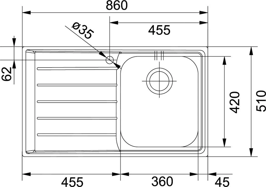 - agujero para el grifo de 35 mm de diámetro
