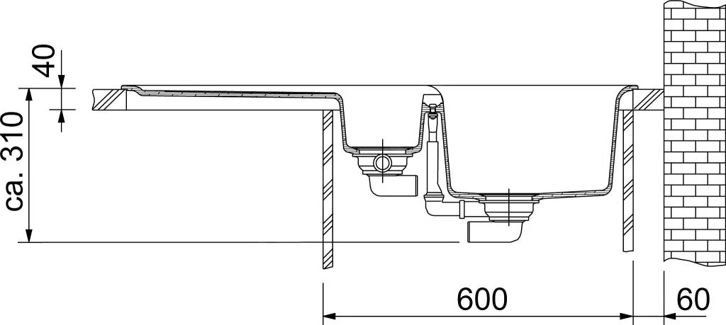 - 2 fregaderos: 340 × 440 × 190 mm
