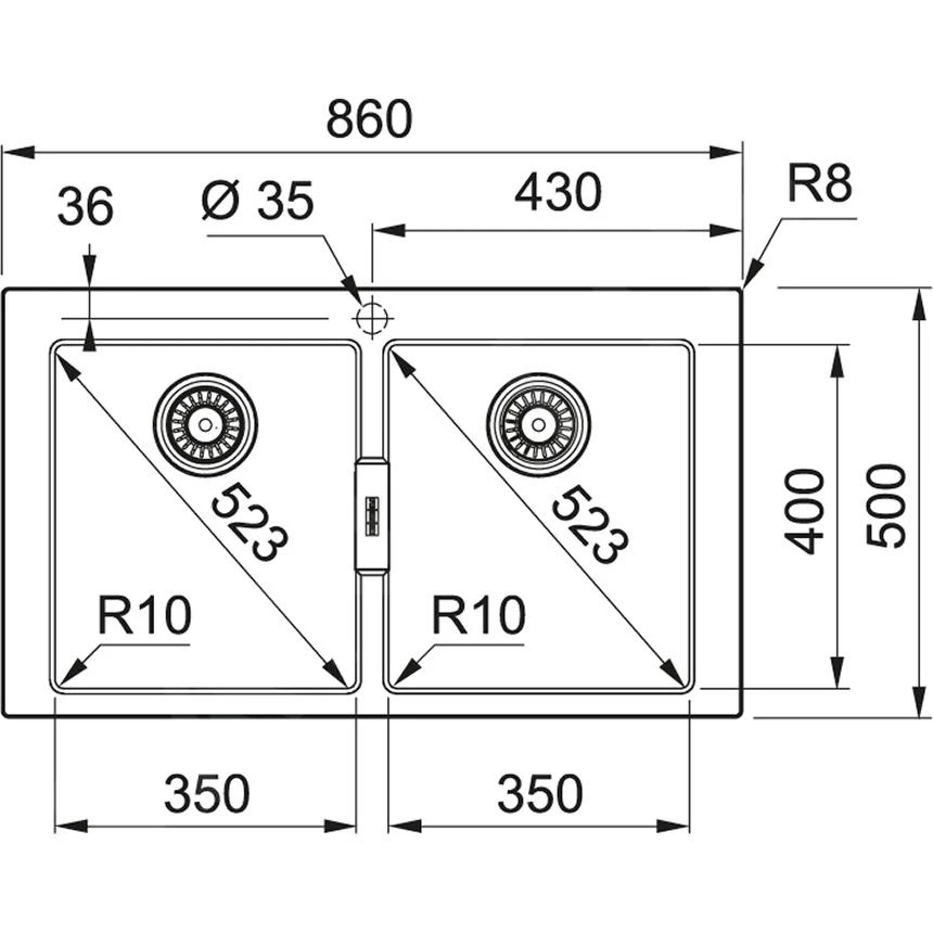 - orificio para grifo con diámetro de 35 mm